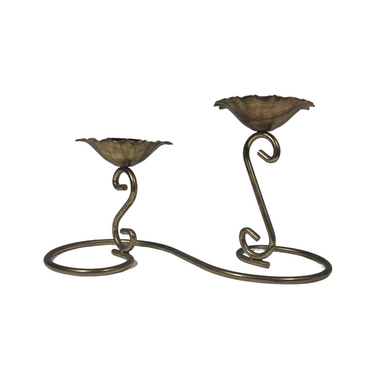 Brass Double Flower Candle Holder