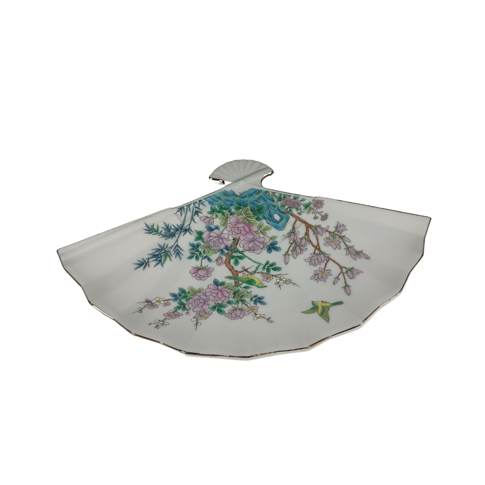 1960's Porcelain Fan Tray with Dogwood & Birds