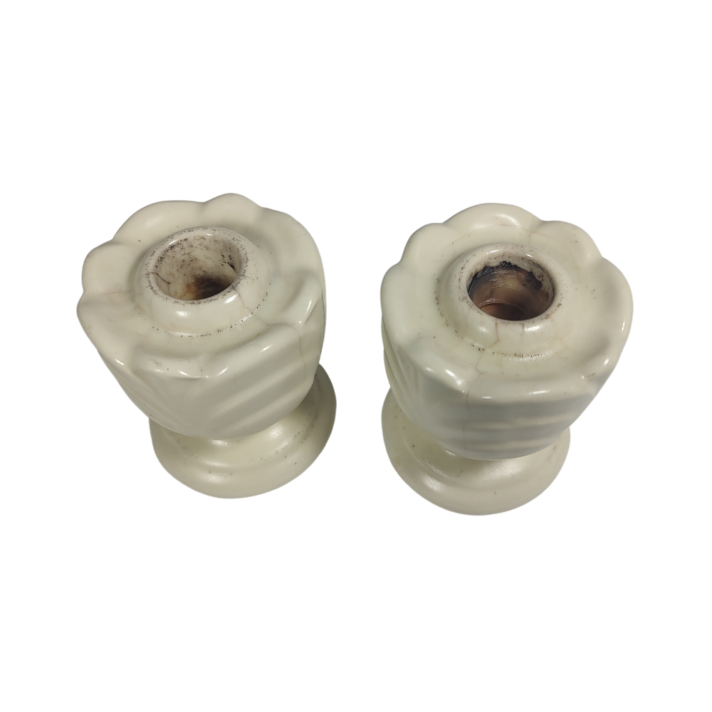 Vintage Rosebud Shaped Creamy White Pottery Candle Stick Holder