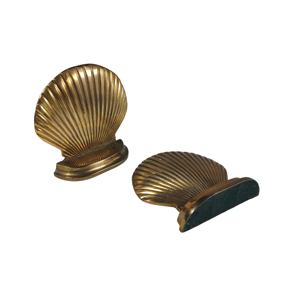Pair Vintage Brass Scallop Bookends
