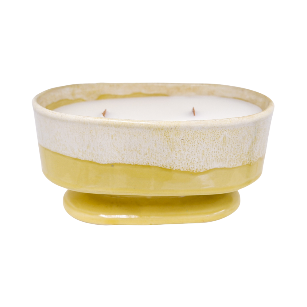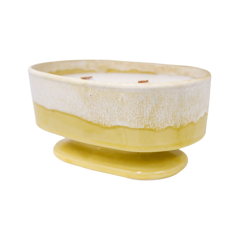 Another funky and unique planter that we found. But we just couldn't resist a good glaze! A beautiful golden rod color catches your eye, with the perfect speckle drip to match.
