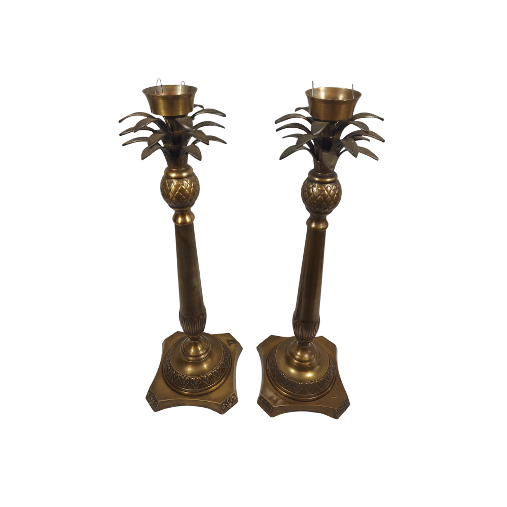 Pair Tall Brass 1960's Set Sago Palm Candle Holder