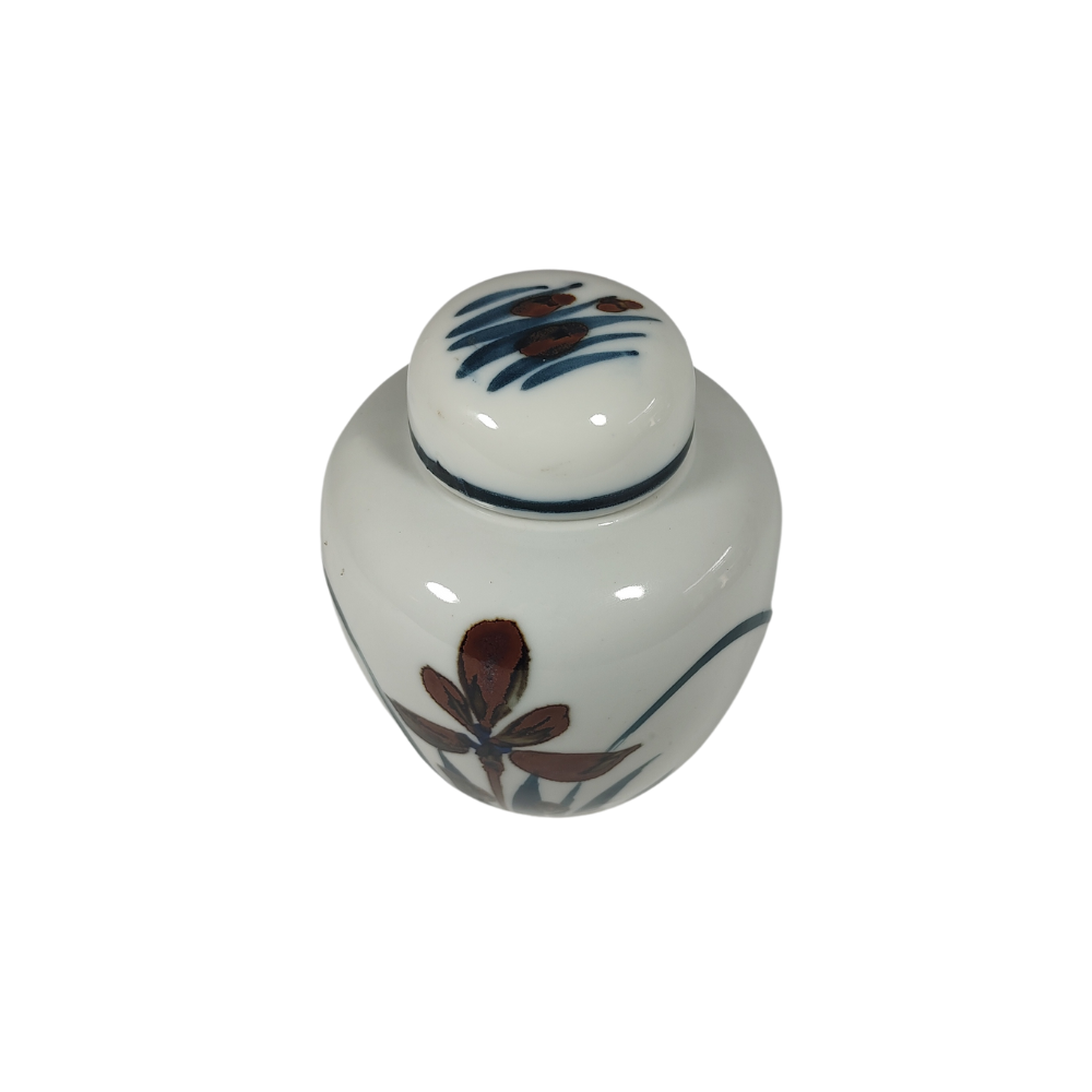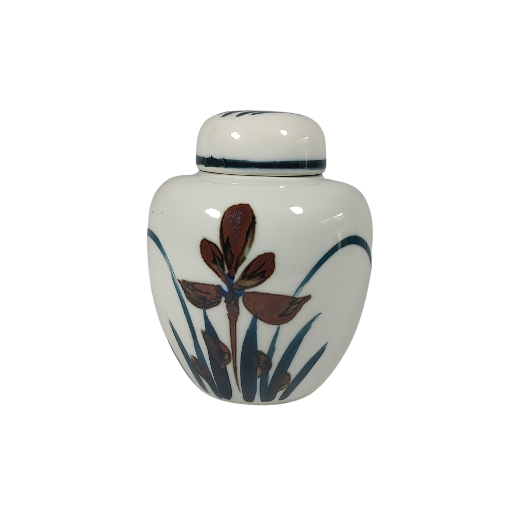 This Ceramic Ginger Jar flower design with a gold edge lid is white porcelain and very soft and feminine it would make a great gift or beautiful home decoration. Perfect vintage condition no chips, cracks, or scrapes.